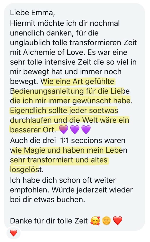 … um messerscharfe Klarheit über die Dynamiken, Menschen und Muster zu gewinnen, die dir nicht mehr dienen – und um bewusst das seelenvolle, leidenschaftliche Liebesleben zu erschaffen, das du dir wirklich wünschst.