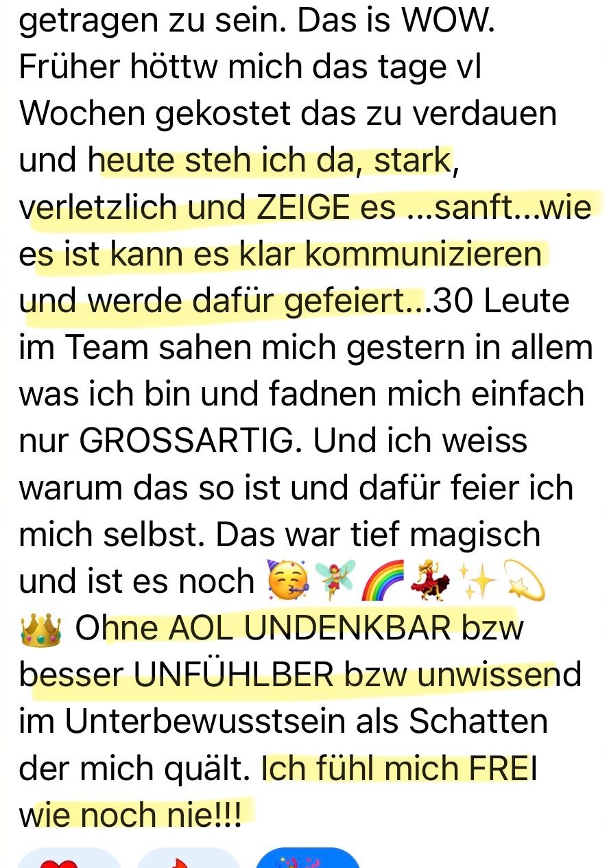 Lass es auf dich wirken. Wenn dich das berührt und du ein inneres „Ja“ spürst, freue ich mich auf eine Zusammenarbeit mit dir.